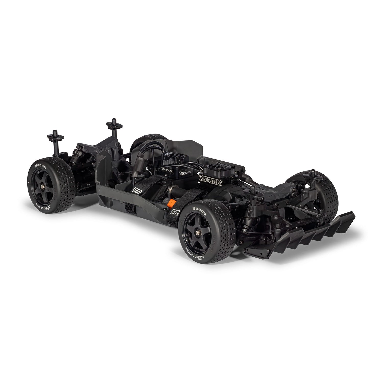 High performance dBoots Hoons belted tires are standard, delivering the all-road grip you need for tarmac, gravel, and everything in between. The iconic Infraction body, available in Blue/Red, Red/Black, and Teal/Pink, turns heads before you've even hit the throttle. Waterproof Spektrum electronics keep the fun rolling through puddles and mud and provide clean, responsive control and easy serviceability. The Spektrum SLT3™ transmitter adds helpful control as you level up. Add your 2S or 3S LiPo and discover how much ground a 65+ MPH street machine can cover.