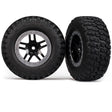 This is a pair of Traxxas BFGoodrich Mud Terrain T/A KM2 Tires and Foam Inserts mounted to SCT Split Spoke Wheels.