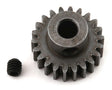 Robinson Racing Extra Hard Blackened Steel 32 Pitch Pinion gears are built to last. Made from high carbon steel and then heat treated to increase the hardness of the surface even more. High carbon steel is naturally higher in lubricity and lower in adhesion than milder grades of steel making these gears ideal for use with metal spur gears. Can be run on motors using a 5mm motor shaft including Traxxas, Associated, and HPI models or for any heavy duty application. Standard 1/8 shaft motors will require a 5mm to 1/8 inch Reducer Sleeve (RRP1200). These pinions are available in a variety of tooth count options. Choose one from the pull down menu above.